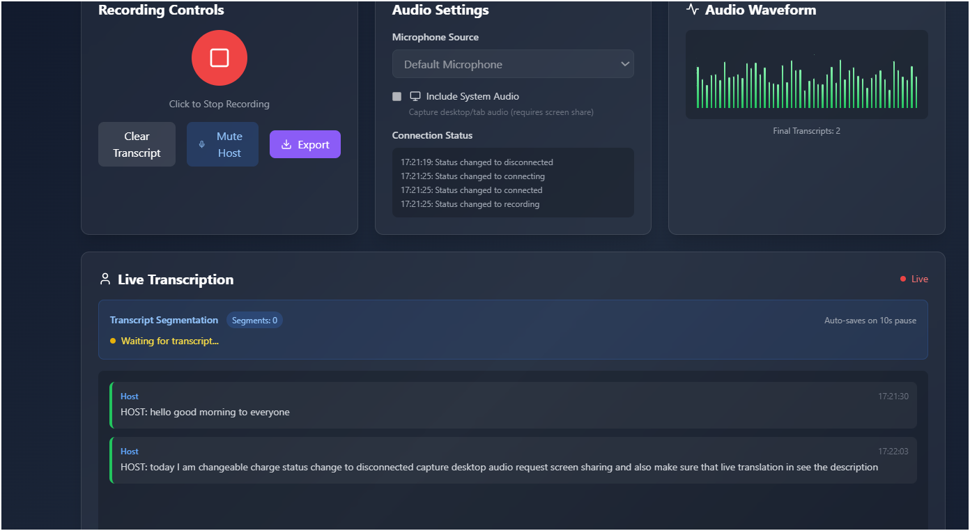 A real-time hand-gesture communication system leveraging OpenCV and MediaPipe to translate sign language into text and commands during online meetings. It empowers deaf and non-verbal users with seamless, low-latency interaction—bridging accessibility gaps in video conferencing and virtual collaboration.