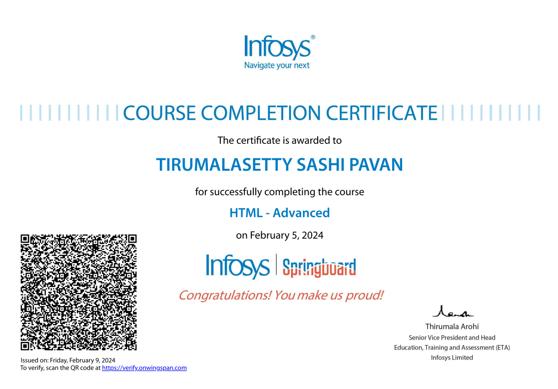 Advanced Web Technologies Completed certification in modern web development with responsive design
